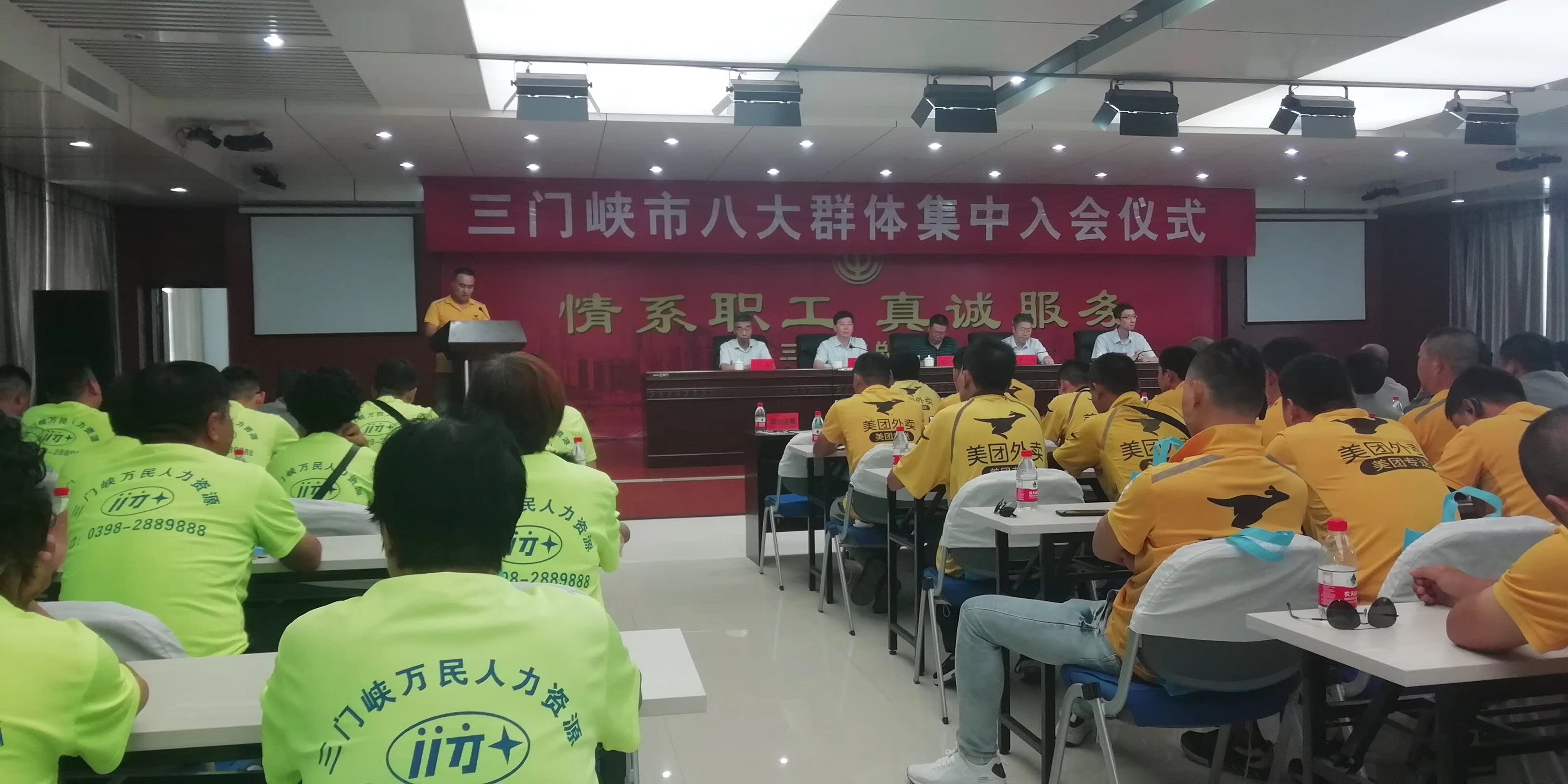 8月1日,三門峽萬民人力資源有限公司總經(jīng)理師萬民帶領(lǐng)40人方隊按時參加了三門峽市總工會舉行的“八大群體”集中入會儀式。省總工會基層工作部部長吳志超,省總工會基層工作部副部長郭凱,三門峽市總工會黨組書記、常務(wù)副主席胡家群,三門峽市工會黨組成員、副主席趙敏,三門峽市總工會副調(diào)研員許波出席儀式。各縣(市)區(qū)總工會負責(zé)同志和來自“八大群體”職工代表共計200人集體參加了儀式。
