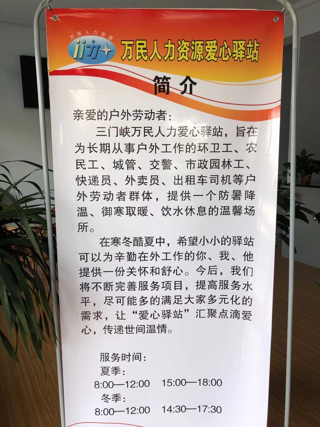 2019年10月10日,三門(mén)峽萬(wàn)民人力資源有限公司愛(ài)心驛站在市、區(qū)兩級(jí)工會(huì)領(lǐng)導(dǎo)的幫助和指導(dǎo)下正式掛牌運(yùn)行了!